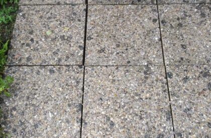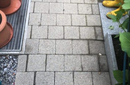 Nach unser­er Heißwass­er-Hochdruck­reini­gung sind auch die Fugen und Zwis­chen­räume der Boden­plat­ten von Unkraut und Moos ausgespült.